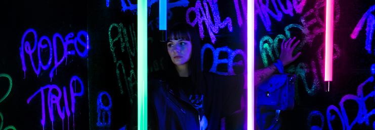 Inspiriert von den fluoreszierenden Lichtern der Stadtlandschaft, zeichnet sich die Kapselkollektion RODEO TRIP in der Nacht im Licht der Neonröhren und Graffitis ab. Mit auffälligen Farben und Ton-in-Ton-Materialmixen, die sowohl weich als auch rau sind, entführt Sie RODEO TRIP in eine endlose Nacht.