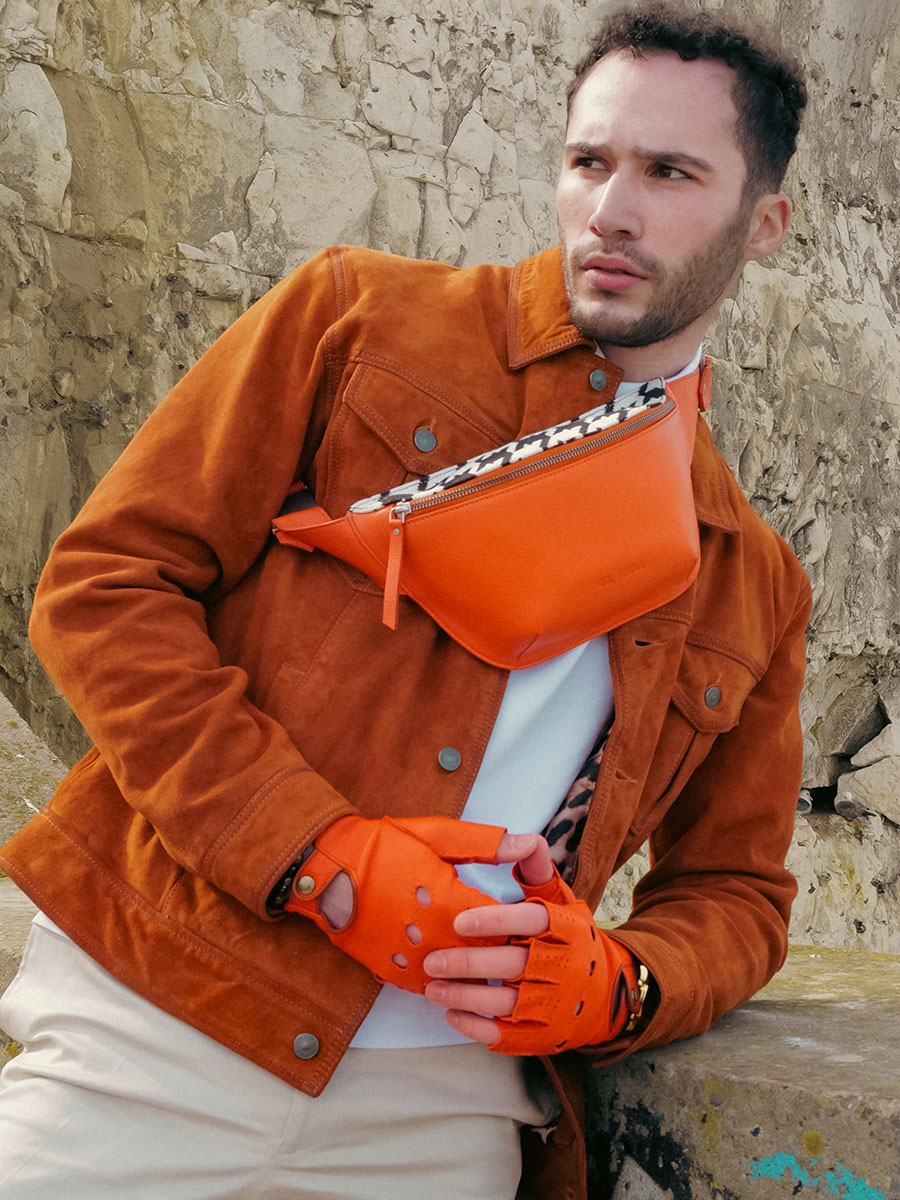 Lederhandschuhe für Herren in Orange Pilotenhandschuhe für Herren – Orange/Natur